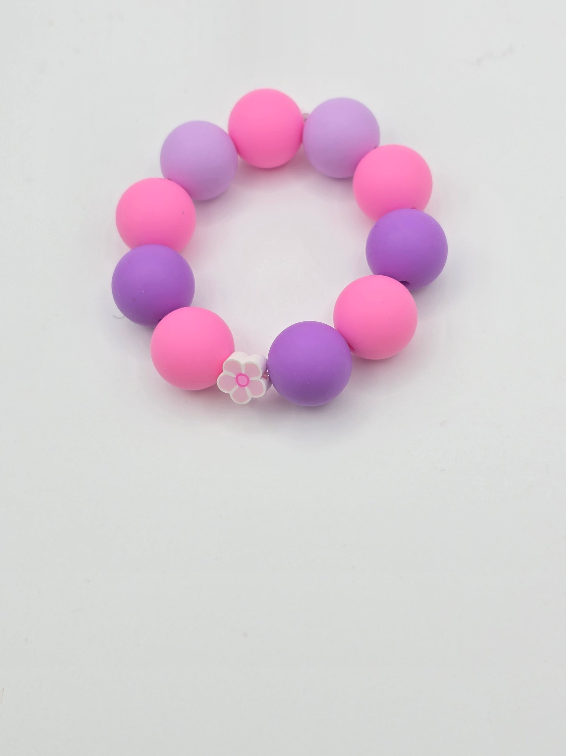 A soft pastel bracelet made with chunky pink and purple beads and a cute flower detail. Sweet, simple, and perfect for kids who love colorful accessories.